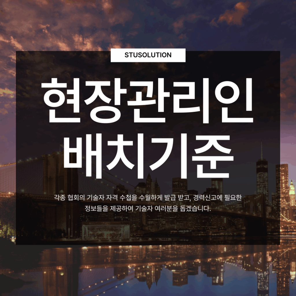 하지만 많은 분들이 경력은 충분한데 학력이나 자격증이 부족해 현장관리인 배치기준을 충족하지 못하는 경우가 많습니다.